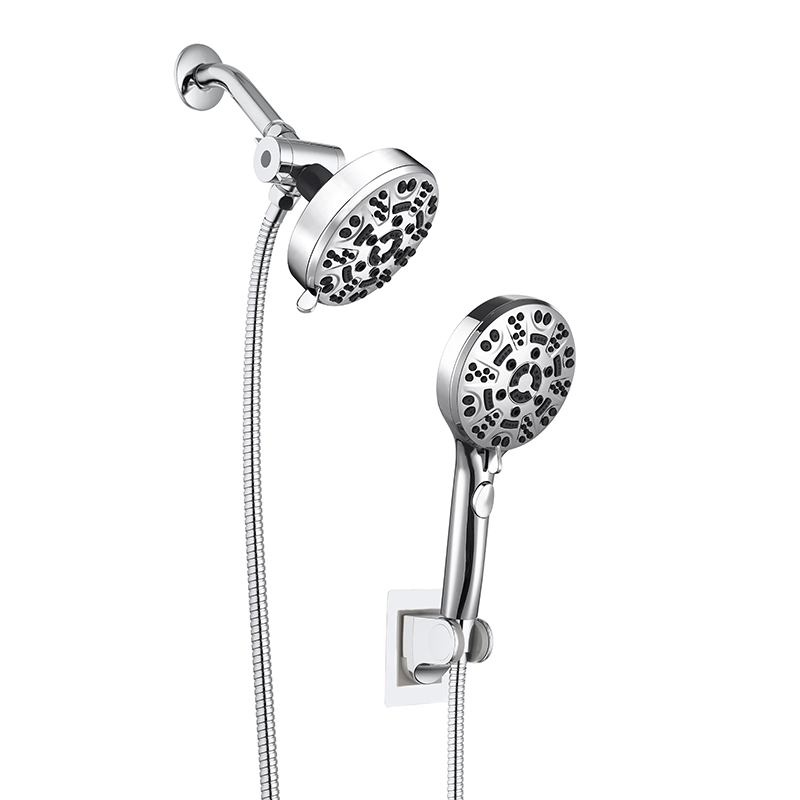 The rainfall shower head with handheld contains a 2-way diverter and a drill free bracket. This replacing shower head with handheld includes 8-position multifunction handle shower and head shower. High quality, nice design and good function.