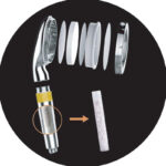 The filter cartridge is put inside the handle. Three options for the filter cartridge: