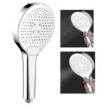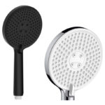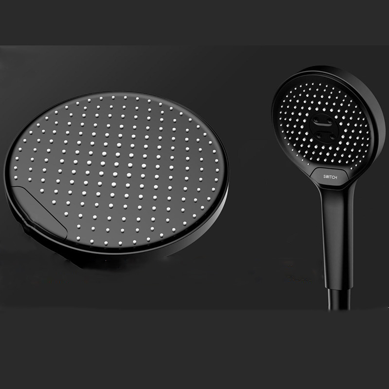 This round black shower head with handle is designed in modern look, large rainfall powerful spray and high quality silicone rubber nozzles. Very easy to change the functions with the button switch. Strog and comfortable water flow. A fantastic handheld shower head far beyond your expetation.