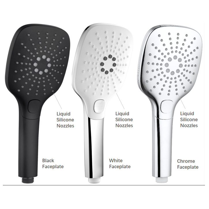 This square black hand held shower with button is designed in modern look, large rainfall powerful spray and high quality silicone rubber nozzles. Very easy to change the functions with the button switch. Strong and comfortable water flow. A fantastic big hand held shower head far beyond your expetation.