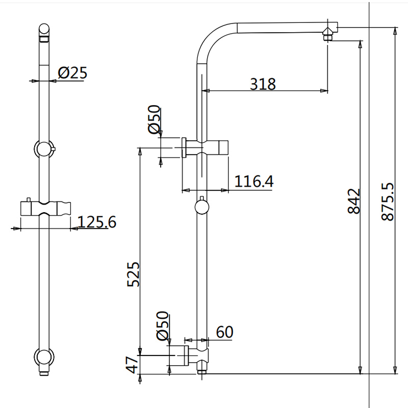 | Package Included | Round Rain Fall Shower, Round Shower Rail, Round Hand Held Shower, Dual Outlet Diverter, Flexible Hose, Shower Holder and Wall Mounted Hardware |