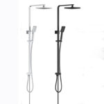 Exposed bathroom shower column, featured with square stainless steel tubes, 3-function hand shower, 9 inch rainfall shower and 1.5M flexible hose. Matte black finish, high pressure powerful spray, easy clean nozzles and nice design shelf, provides you a pleasant spa!